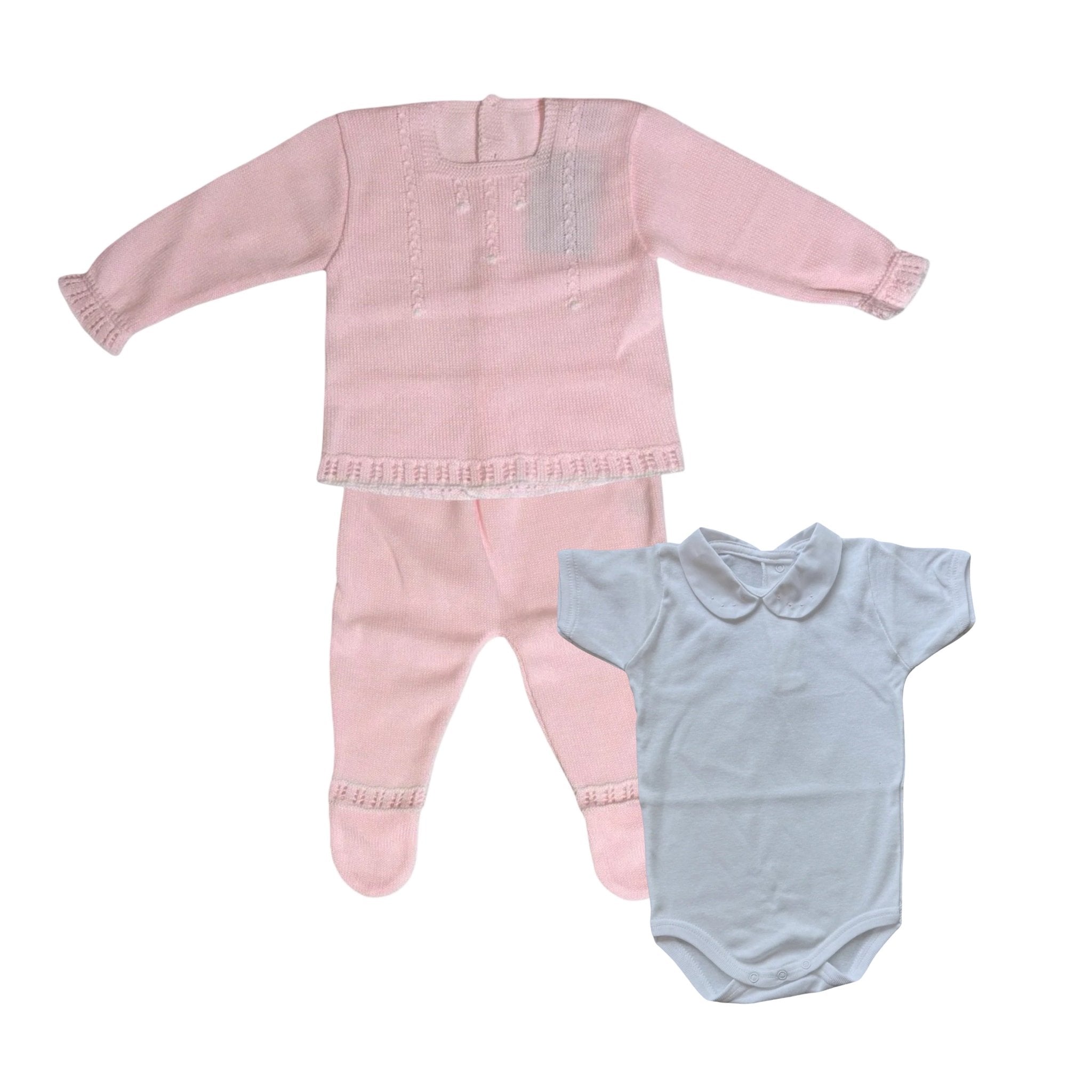 A beautifully versatile little set that adapts to the day. Start with the sweet Babidu onesie underneath for a polished layered look, then simply remove the knitted top when the weather warms up. Easy, charming and comfortable from morning to afternoon.