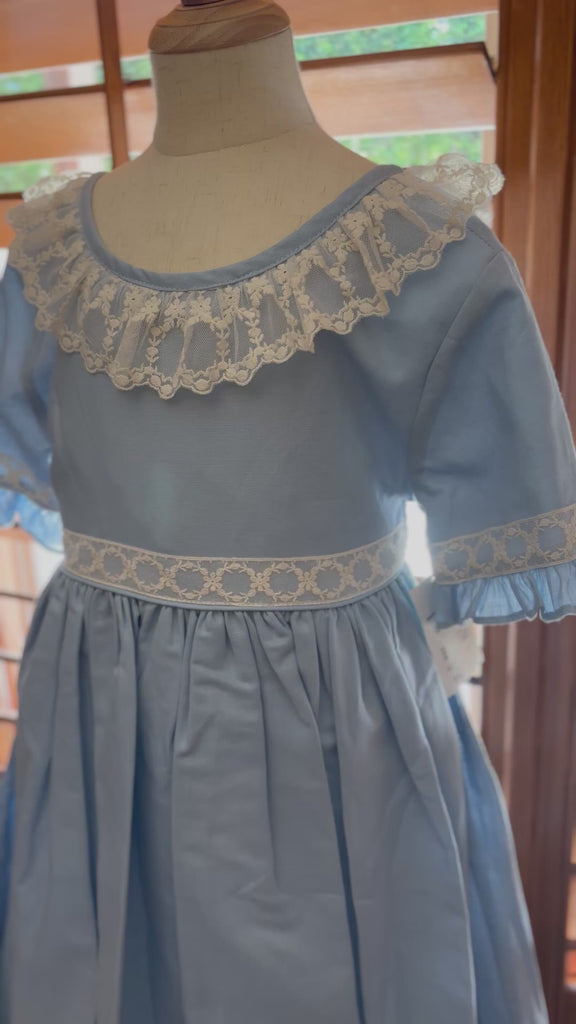 An ode to timeless elegance, the Isadora Lace Dress by Anacastel captures the grace of classic European childhood fashion. Its soft sky-blue hue is beautifully complemented by ivory lace detailing along the neckline and sleeves, while the back bow adds a touch of vintage romance. Designed for unforgettable moments, this Spanish-made piece is both refined and effortlessly charming. Fully lined for comfort.
