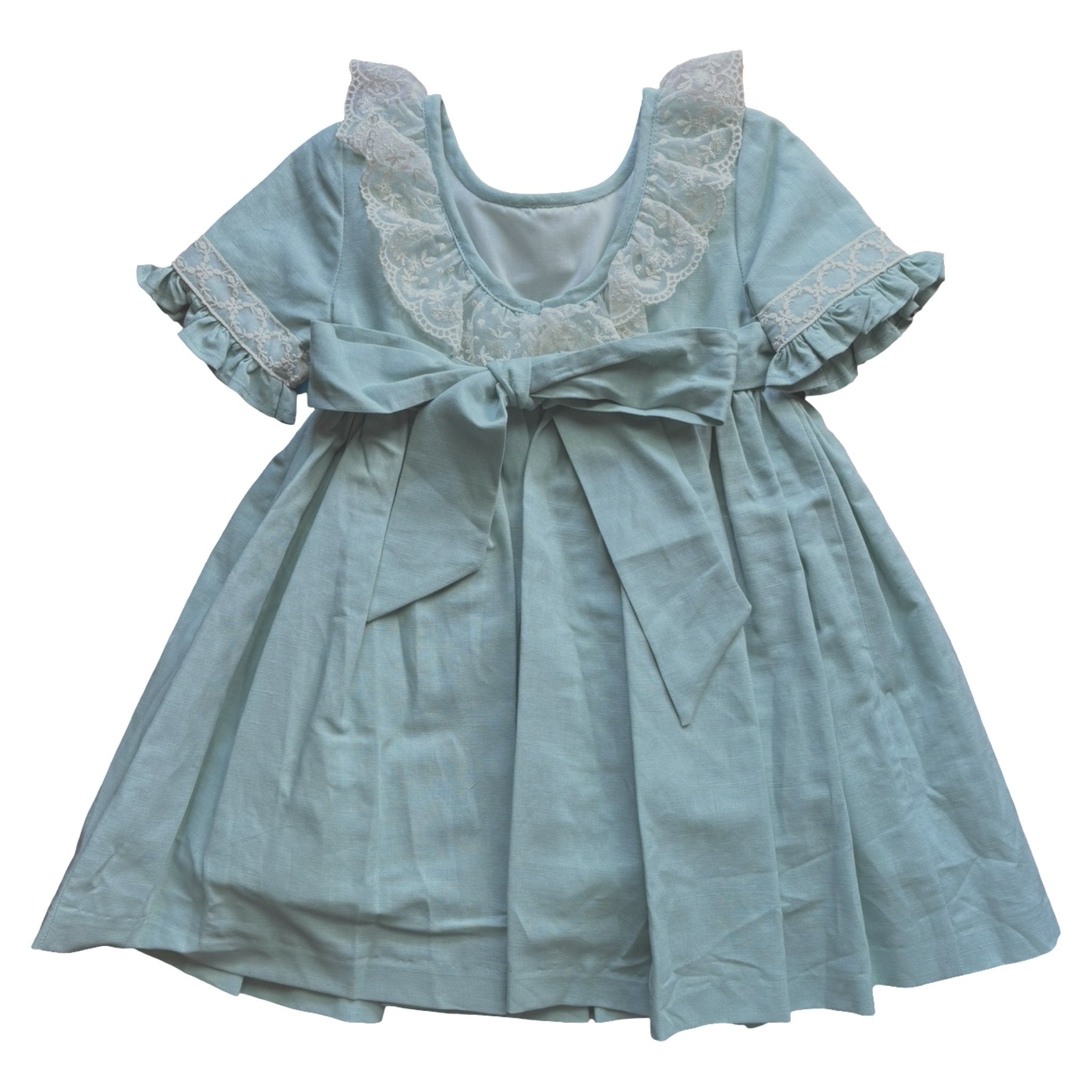 An ode to timeless elegance, the Isadora Lace Dress by Anacastel captures the grace of classic European childhood fashion. Its soft sage hue is beautifully complemented by ivory lace detailing along the neckline and sleeves, while the back bow adds a touch of vintage romance. Designed for unforgettable moments, this Spanish-made piece is both refined and effortlessly charming. Fully lined for comfort.